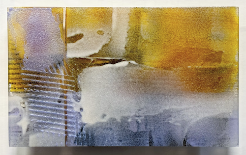 "My art and life are a study of contrasts; order and chaos, thick and thin, questioning and acceptance. Using rich surfaces and layers of glass, I contrast fleshy realism with abstraction. Immediacy and restraint, delicacy and directness; I balance bold composition and nuanced line. I'm a maker of pictures and teller of stories; soothed by familiar fluency yet stirred by ecstatic newness. Fleeting gesture on solid ground, murky meaning and bruising impact, unrest and eerie calm. Disparate elements collide and resolve into beauty."